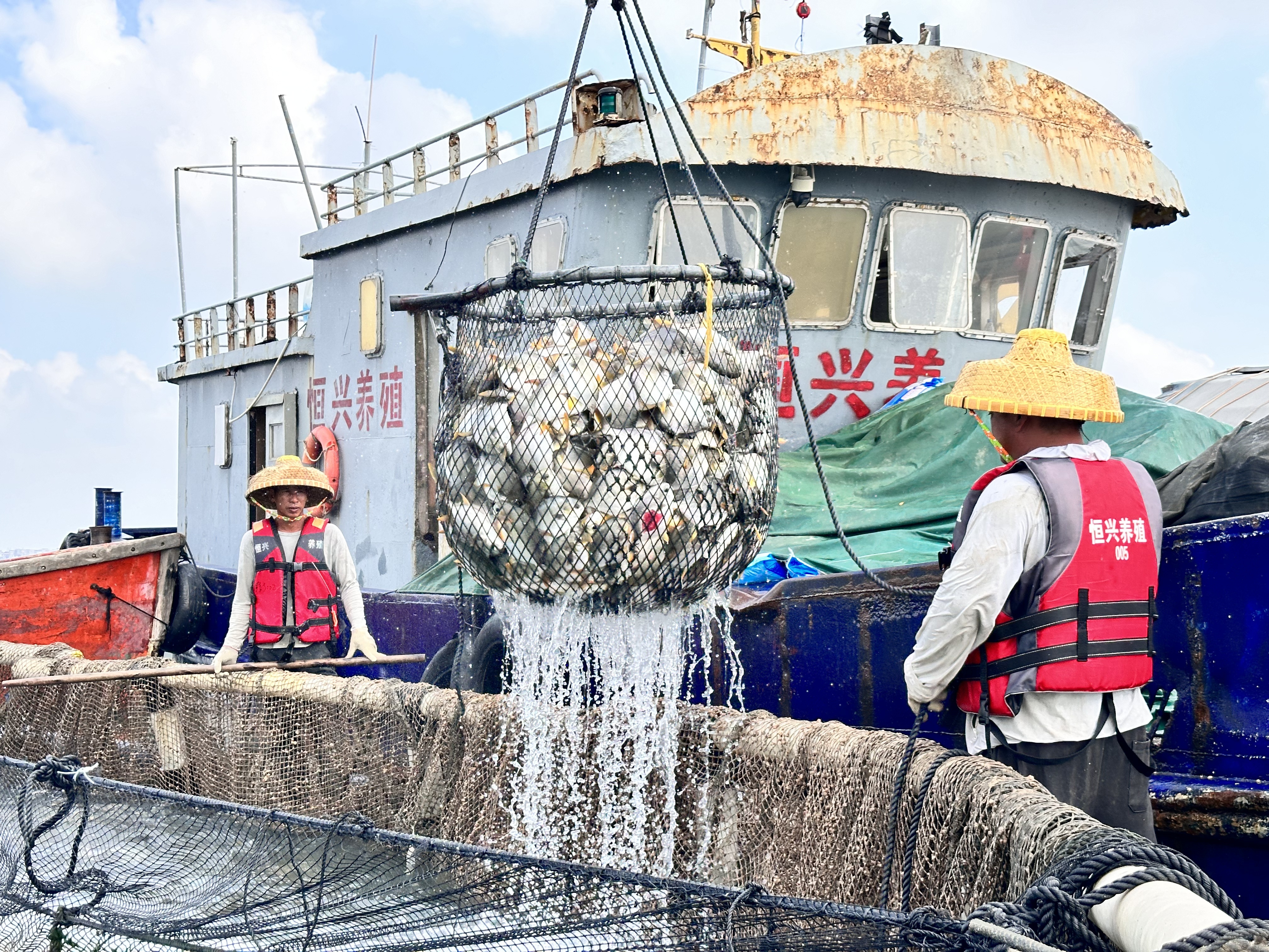 直播背景中,深远海桁架式网箱在碧波间若隐若现,恒兴渔业特呈基地的现代化养殖场景让观众眼前一亮。这里不仅是广东省第一个深海网箱产业园,更是广东海洋牧场建设的一个缩影。镜头跟随着渔民的身影,观众仿佛能感受到南海的海风,闻到海水的味道,浮现那些在海水深处自由游弋的金鲳鱼。